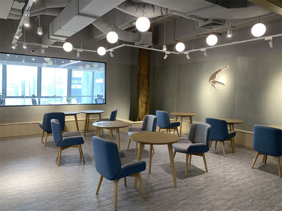 公共辦公區(qū)域采用木紋家具,左右未采用隔離擋板,通過(guò)綠植盆栽間隔辦公區(qū)域,在保證員工溝通流暢性的同時(shí),又能有效緩解視覺(jué)疲勞。在辦公區(qū)域兩側(cè)還增加了臨時(shí)休息區(qū),開(kāi)放式的圍桌座椅可容納多人。一側(cè)的落地窗可一覽無(wú)余的欣賞窗外景觀,為員工提供了一個(gè)思想碰撞,方案交流,以及辦公休閑的絕佳場(chǎng)所。